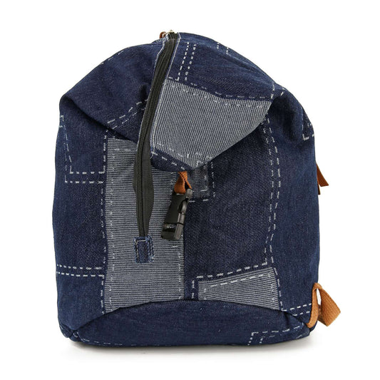 Patchwork Denim Fashion Backpack: Blue
