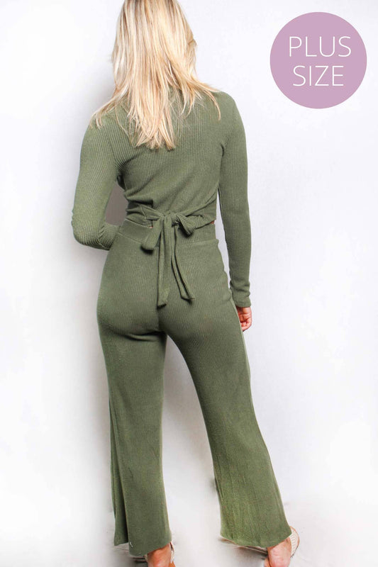 Women's Plus Long Sleeves Tie Back Rib Loungewear Set