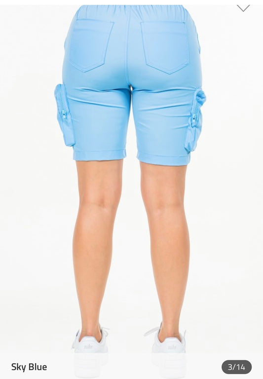 PLUS SIZE HIGH WAIST SHIRRED LEG SHORTS-LIGHT BLUE