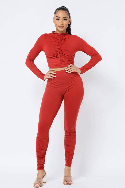 PLUS OFF SHOULDER WRAP AROUND TOP AND PANTS SET