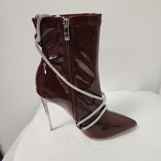 Princess Organza Wrapped Style Heeled Ankle Boots: RED