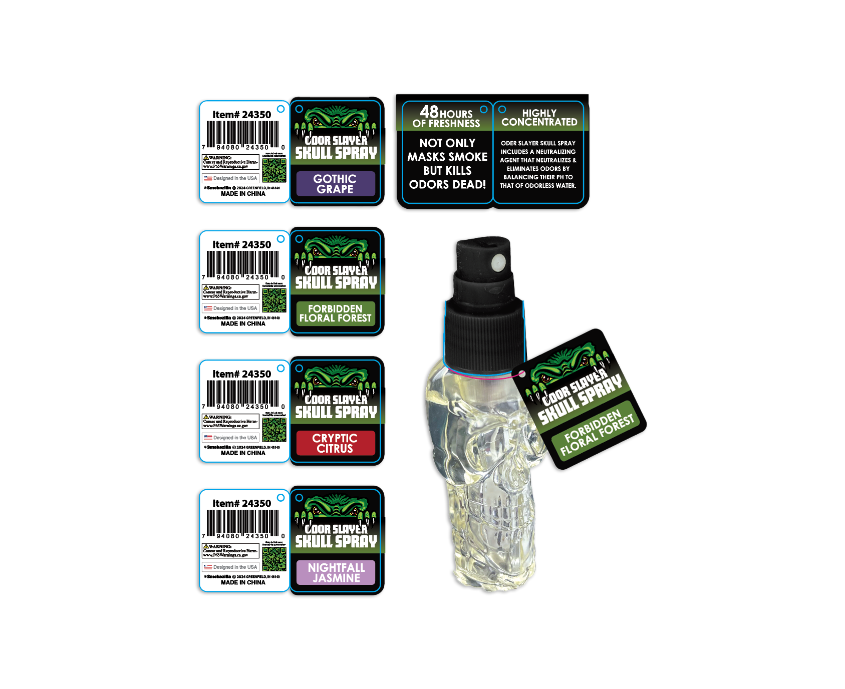 Combat smoke and odors with this powerful spray! Knock 'em out with one shot of Odor Slayer. One spray and odor is dead! Each bottle packs a punch and terminates odor with one spray, leaving your space smelling fresh for up to 48 hours. Great for cars, kitchens, offices, restrooms, trunks, trashcans… you name it! Highly concentrated with 80% oil, this spray kills odor fast and doesn't just mask it! Get your air freshener on with SMOKEZILLA! SCENT MIX: - Gothic Grape - Forbidden Floral Forest - Cryptic Citrus - Nightfall Jasmine