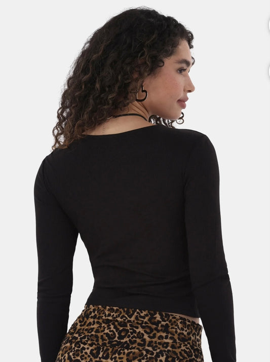 Yoga Fabric One Shoulder Front Open Tie Crop Top: Black