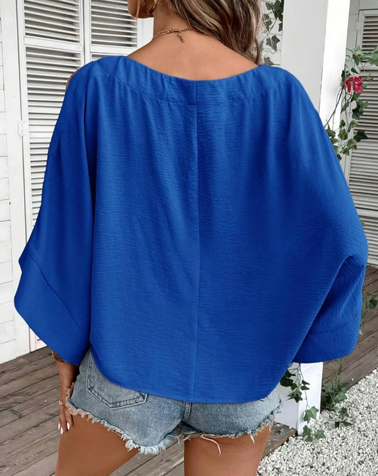 Plus Size One Shoulder Asymmetrical Hem Blouse: MULTI