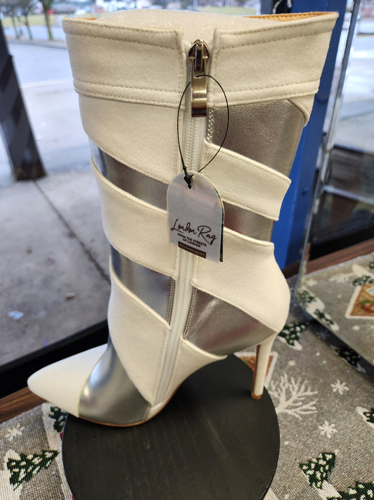 Princess Organza Wrapped Style Heeled Ankle Boots:White