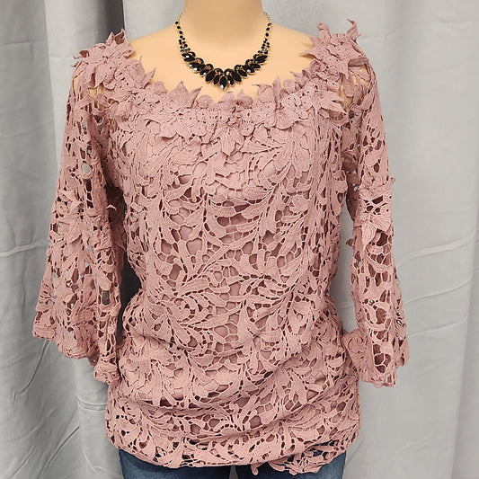 Mesh See Through All Over Pearl Beaded Sequin Top: Fuchsia